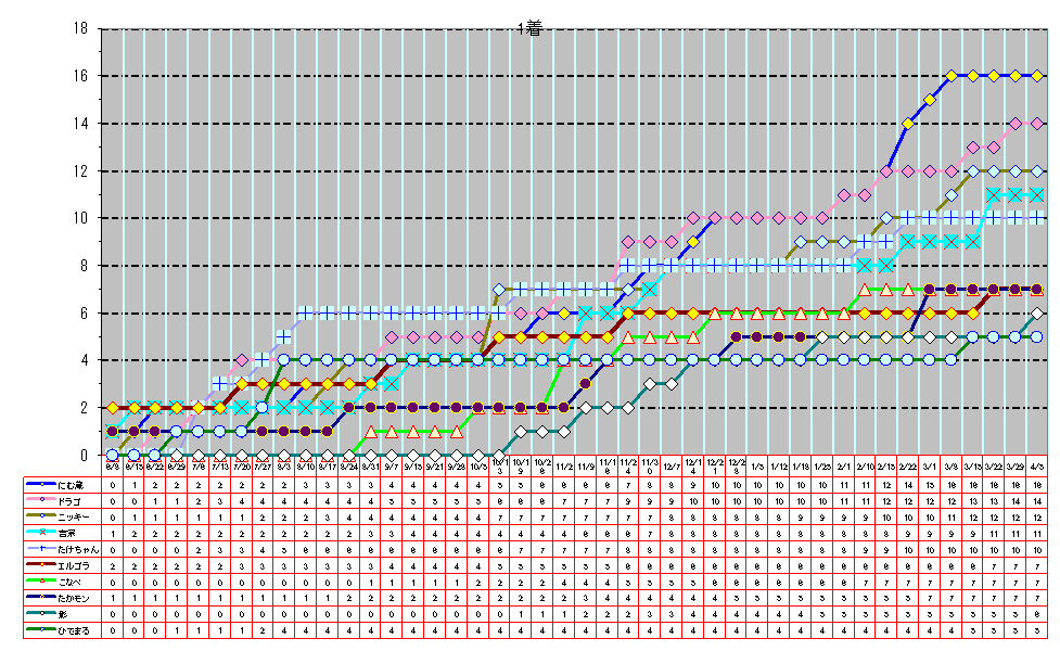 | 1→( 1) | にむ蔵 | 16 | ±0 | 16 |