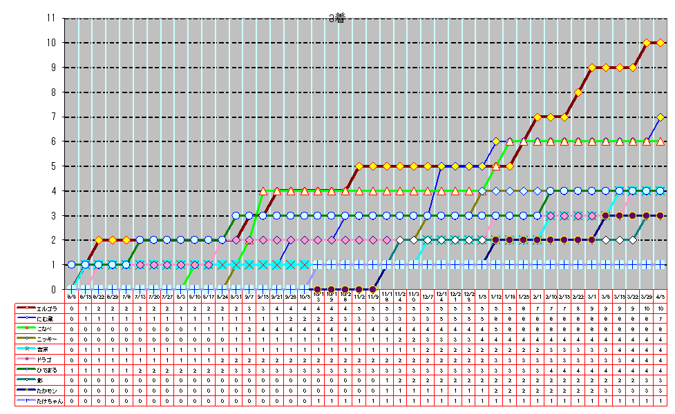 | 8→( 8) | たかモン | 3 | ±0 | 3 |