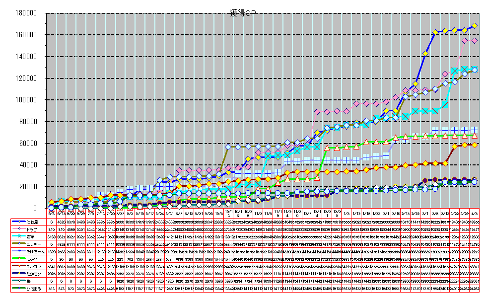 | 1→( 1) | にむ蔵 | 168552 | +4500 | 164052 |