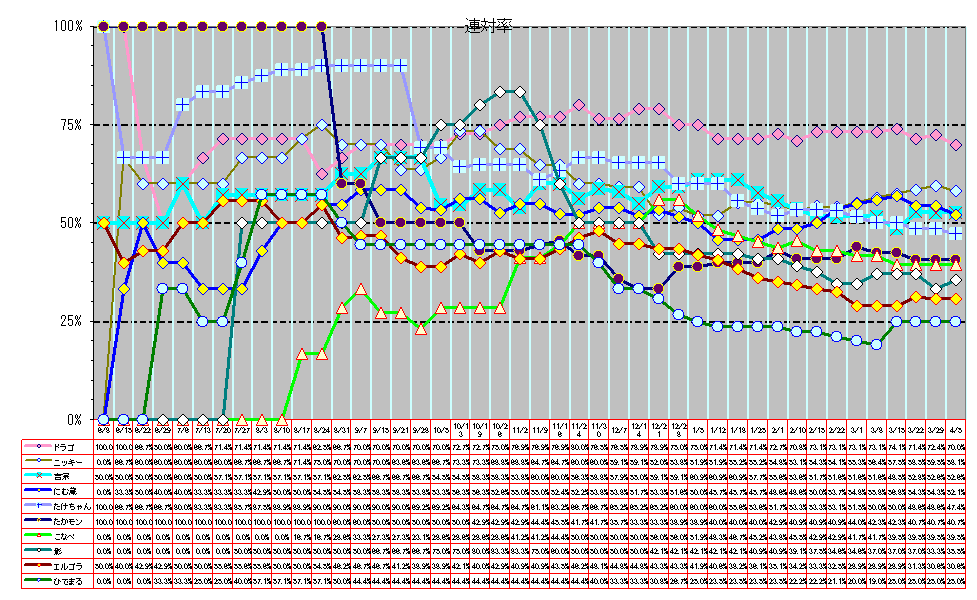 | 4↓( 3) | にむ蔵 | 52.1% | -2.2% | 54.3% |