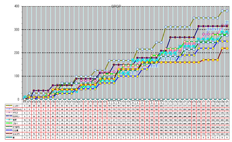 | 第40週:03/07(土)〜03/08(日) | POG | 古馬 | 1位 | 350 | ±0 | 3位 | 302 | +55 | 4位 | 281 | ±0 | 2位 | 314 | ±0 | 5位 | 258 | ±0 | 6位 | 249 | ±0 | 7位 | 244 | ±0 | 8位 | 220 | ±0 | 9位 | 170 | ±0 | 10位 | 0 | ±0 |